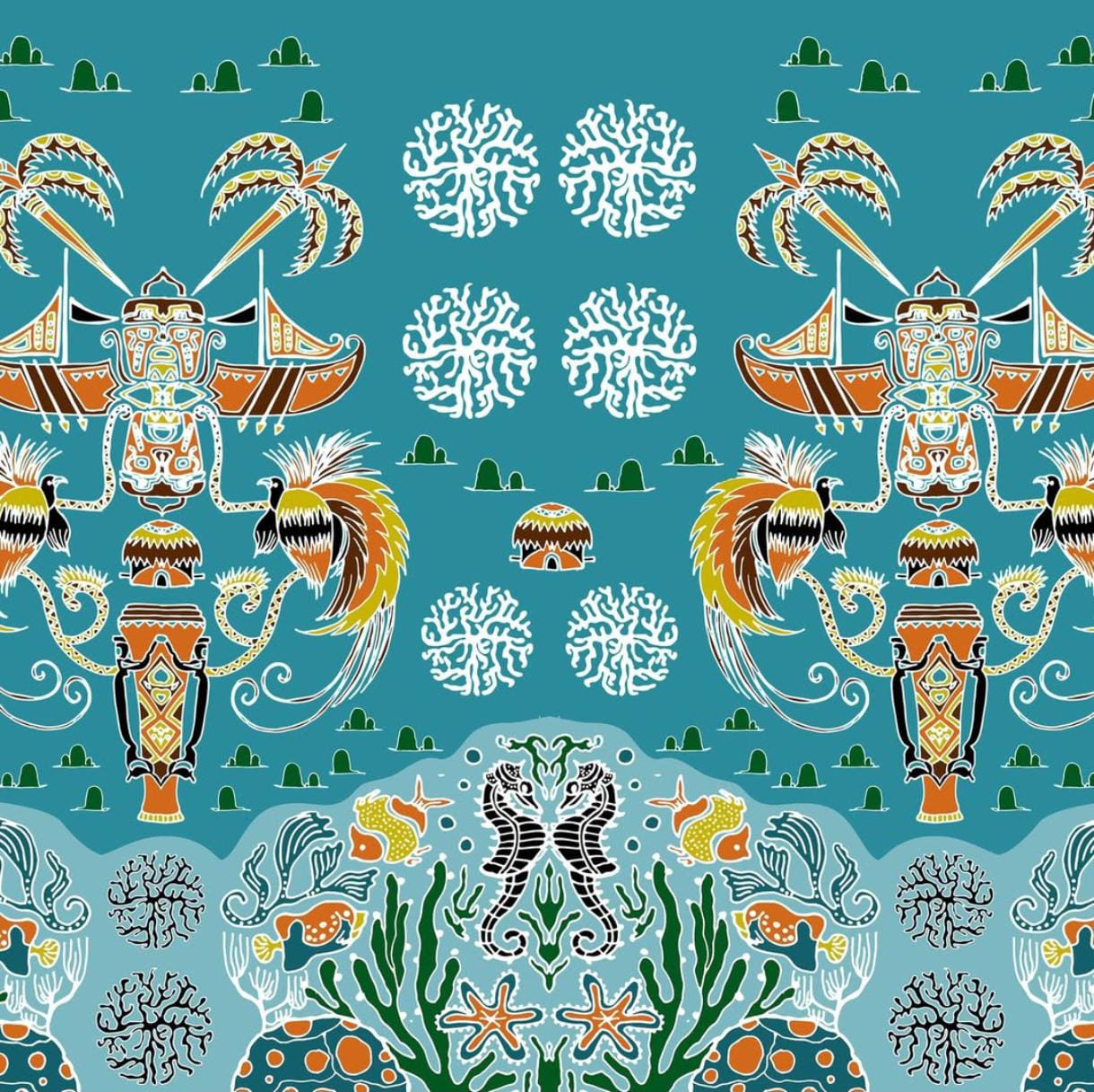 Motif batik Raja Ampat biasanya mengangkat kekayaan alam bawah laut dan budaya lokal. Ciri khas motifnya meliputi Motif laut dan biota: seperti ikan, terumbu karang, hiu, penyu, dan burung cendrawasih. Motif alam: seperti pantai, ombak, batu karst (karang) yang menjadi ikon wisata Raja Ampat. Warna alami dan cerah: biru laut, hijau toska, coklat karang, dan oranye matahari terbenam.